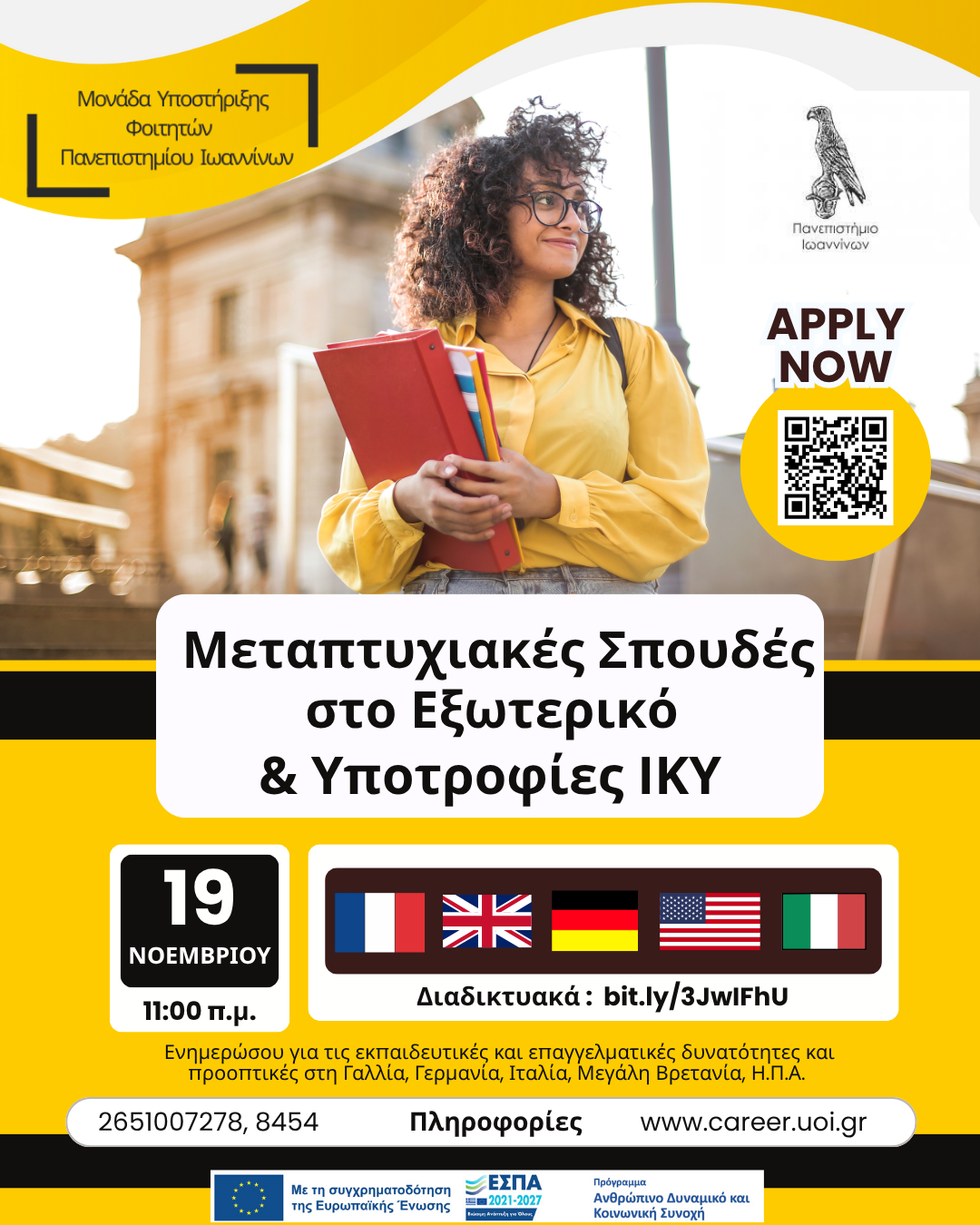 Διαδικτυακή εκδήλωση με θέμα “Μεταπτυχιακές Σπουδές στο Εξωτερικό και Υποτροφίες ΙΚΥ”, η οποία θα πραγματοποιηθεί την Τετάρτη 19 Νοεμβρίου 2025.